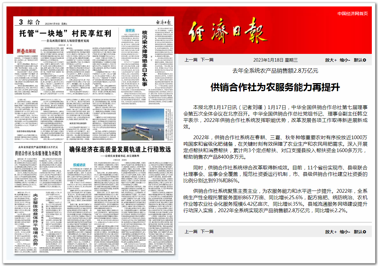 【經(jīng)濟日報】供銷合作社為農(nóng)服務能力再提升