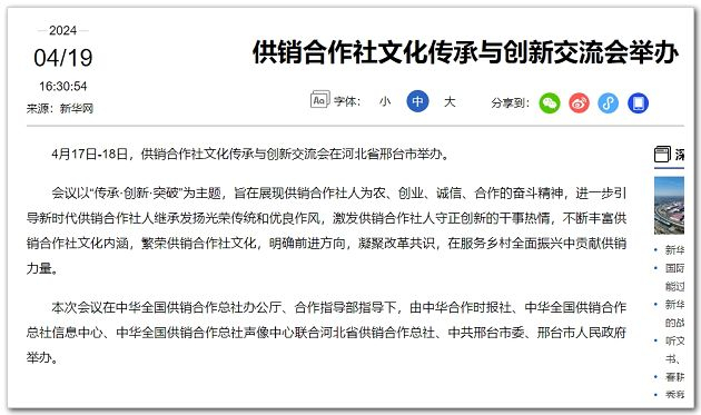 4月17日-18日,供銷(xiāo)合作社文化傳承與創(chuàng)新交流會(huì)在河北省邢臺(tái)市舉辦。