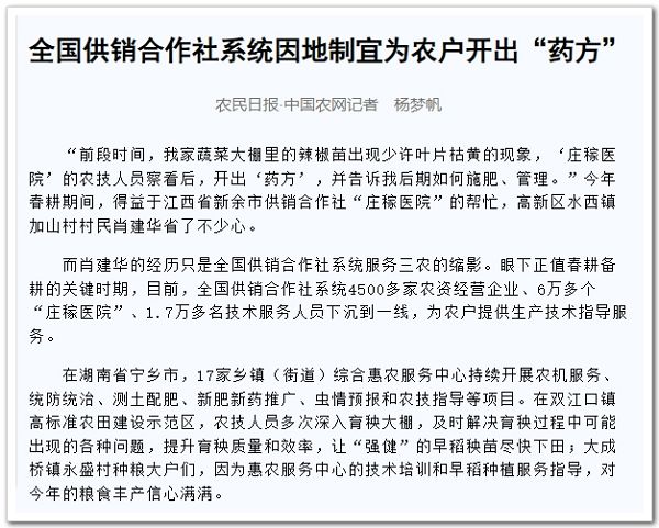 【農(nóng)民日?qǐng)?bào)】全國供銷合作社系統(tǒng)因地制宜為農(nóng)戶開出“藥方”