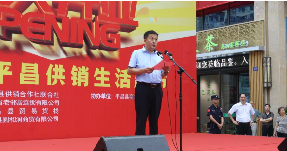 7月20日,老鄰居?平昌供銷生活超市隆重開業(yè)。省供銷社企業(yè)發(fā)展與金融服務(wù)處處長楊韜,省老鄰居連鎖公司董事長許宏勇及省供投集團部分子公司負責人,巴中市供銷社黨組書記、理事會主任劉羽,平昌縣委副書記、縣長杜小兵,縣委常委、副縣長李寶出席活動。平昌縣委副書記曹光輝代表縣委政府致辭。省供銷投資集團董事長茍學川宣布正式開業(yè)。