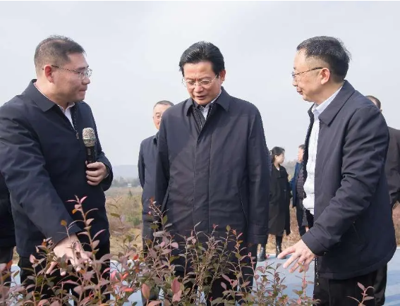 在秋錦山村,蔡邦銀一行實地查看了當?shù)厮{莓的種植情況,并就藍莓產(chǎn)量產(chǎn)值和市場銷售情況與相關(guān)負責人進行了深入交流。他要求,要從產(chǎn)業(yè)培育、精深加工等方面持續(xù)發(fā)力,不斷延伸藍莓產(chǎn)業(yè)鏈,進一步推動藍莓產(chǎn)業(yè)轉(zhuǎn)型升級,拓寬農(nóng)民增收致富渠道,更好發(fā)揮項目聯(lián)農(nóng)帶農(nóng)的作用,為推進鄉(xiāng)村全面振興提供產(chǎn)業(yè)支撐。